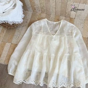 Áo Voan Sơ Mi Babydoll Cổ V Tay Dài A614 – Lamuse