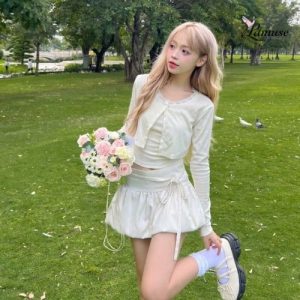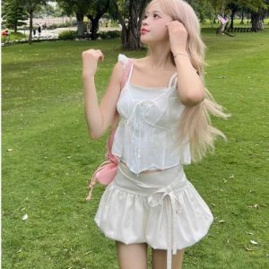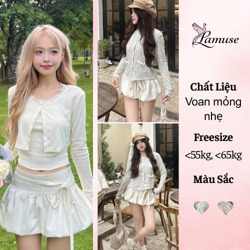 “Chân váy ngắn voan mỏng nhẹ nữ Ulzzang dáng xòe freesize phối dây rút”