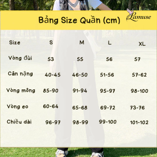 ✔ Bảng size chỉ mang tính chất tham khảo tương đối, tùy thuộc vào số đo cơ thể mỗi người và chất liệu vải sẽ có sự chênh lệch nhất định. Nếu bạn mua hàng lần đầu hoặc chưa chắc chắn về chọn size, vui lòng inbox cho Lamuse để được tư vấn size phù hợp