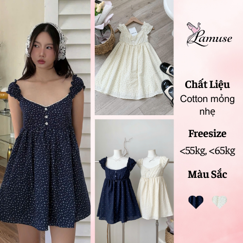 Chiếc váy mang phong cách vintage nhẹ nhàng, lãng mạn. Chất liệu cotton mỏng, nhẹ với họa tiết hoa nhí tinh tế tạo cảm giác mềm mại, nữ tính. Thiết kế cổ V cùng phần tay bồng nhẹ và viền ren bèo nhún giúp tôn lên bờ vai và nét duyên dáng của bạn.